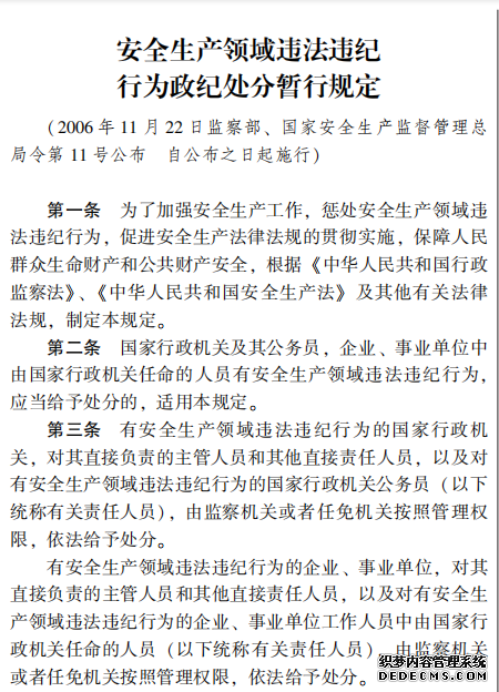 安全生產領域違法違紀 行為政紀處分暫行規(guī)定