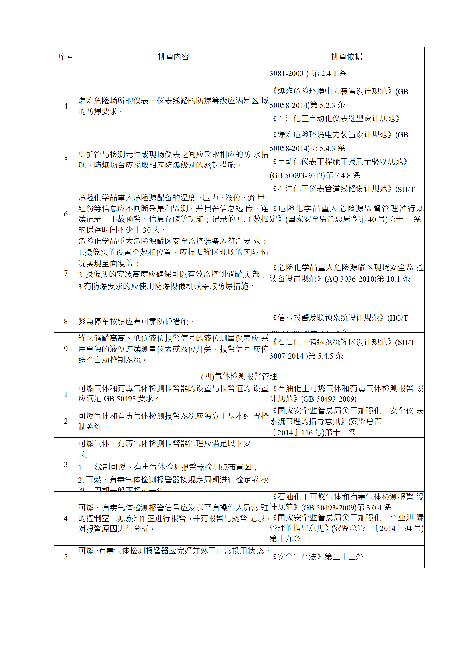企業(yè)應(yīng)結(jié)合自身安全風(fēng)險(xiǎn)及管控水平,按照化工過(guò)程安全 管理的要求,參照各專業(yè)安全風(fēng)險(xiǎn)隱患排查表(見(jiàn)附件),編制 符合自身實(shí)際的安全風(fēng)險(xiǎn)隱患排查表,開(kāi)展安全風(fēng)險(xiǎn)隱患排查 工作。