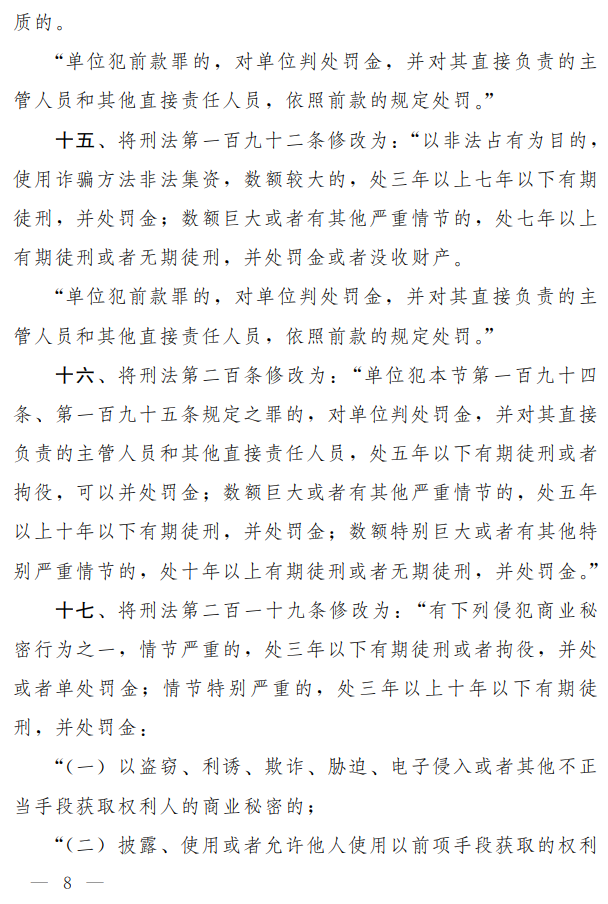 第十三屆全國人大常委會第二十二次會議對《中華人民共和國刑法修正案(十一)(草案二次審議稿)》進行了審議,現(xiàn)公布《中華人民共和國刑法修正案(十一)(草案二次審議稿)》全文。