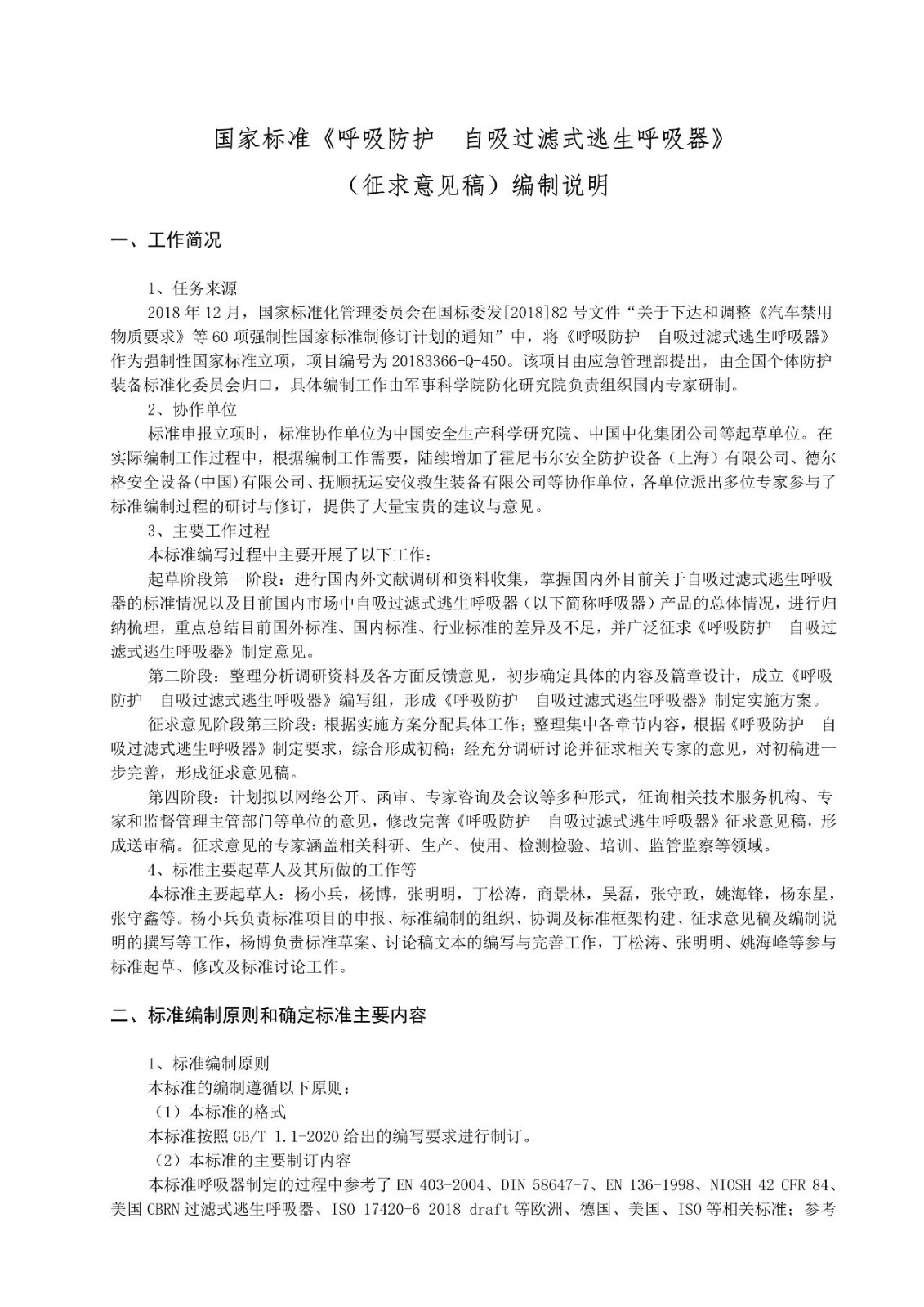國家標(biāo)準(zhǔn)《呼吸防護自吸過濾式逃生呼吸器(征求意見稿)》公開征求意見