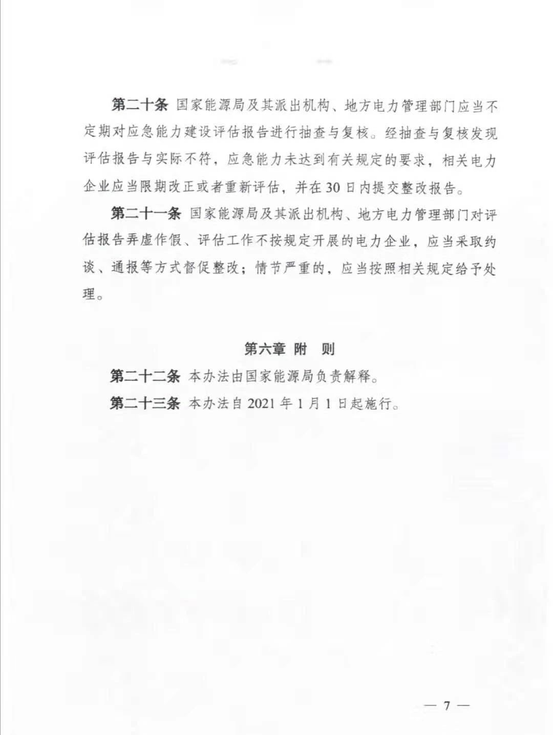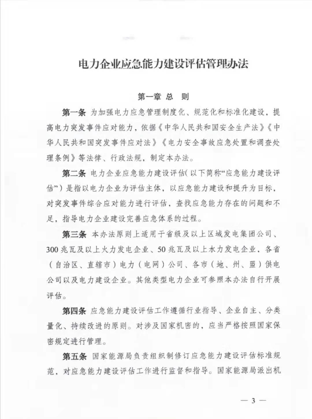 國家能源局印發(fā)《電力企業(yè)應(yīng)急能力建設(shè)評(píng)估管理辦法》
