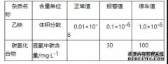 1)采用色譜儀連續(xù)分析乙炔和碳氫化合物含量。在沒有條件分析原料空氣時。要經(jīng)常注意風(fēng)向。在原料空氣處于乙炔站附近的下風(fēng)向時,要采取縮短液空吸附器的切換周期等措施。液氧中雜質(zhì)含量至少8h要分析一次。規(guī)定指標(biāo)見表;