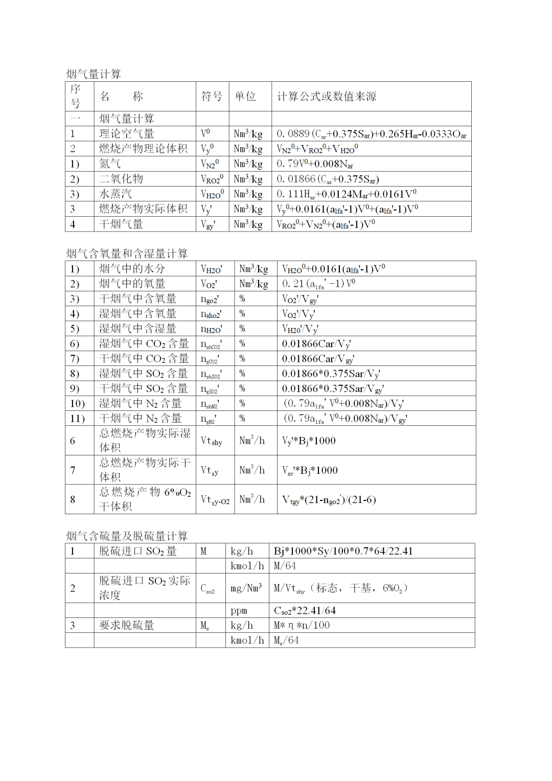 2、脫硫計算公式