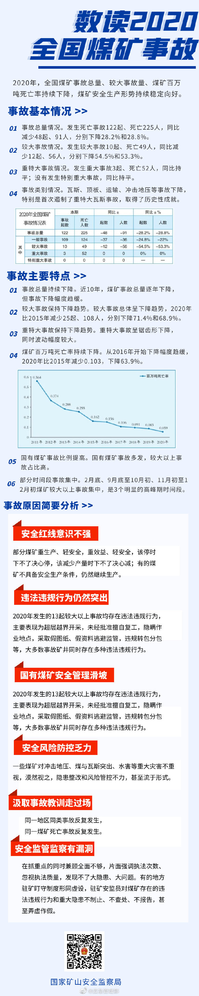 2020年,面對極其嚴(yán)峻復(fù)雜的國內(nèi)外形勢,特別是新冠肺炎疫情的嚴(yán)重沖擊,在黨中央、國務(wù)院的堅強領(lǐng)導(dǎo)下,各地區(qū)、各有關(guān)部門和廣大煤礦企業(yè)統(tǒng)籌抓好疫情防控和安全生產(chǎn)工作,全國煤礦事故總量、較大事故量、煤礦百萬噸死亡率持續(xù)下降,煤礦安全生產(chǎn)形勢持續(xù)穩(wěn)定向好。
