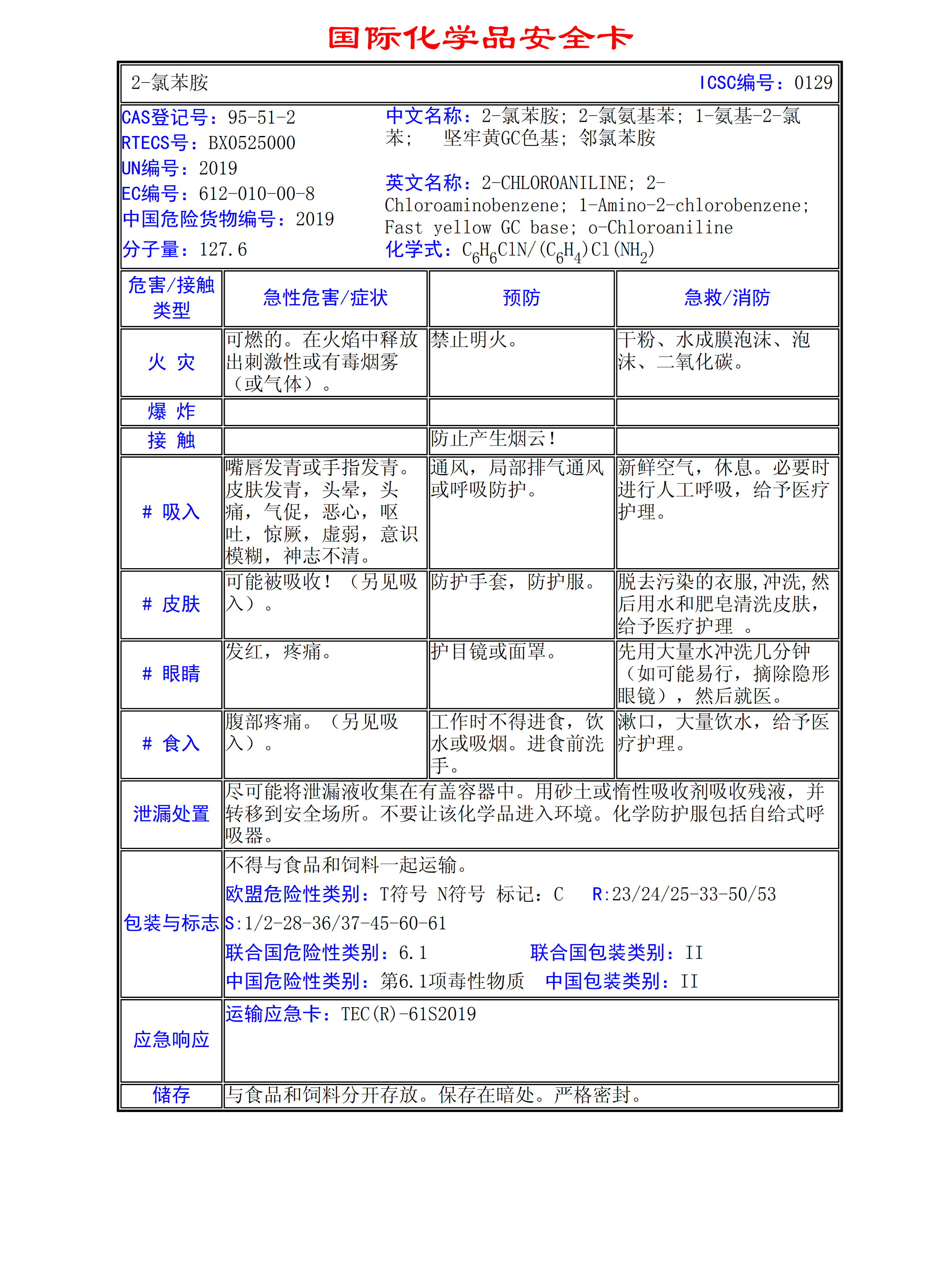 2-氯苯胺MSDS