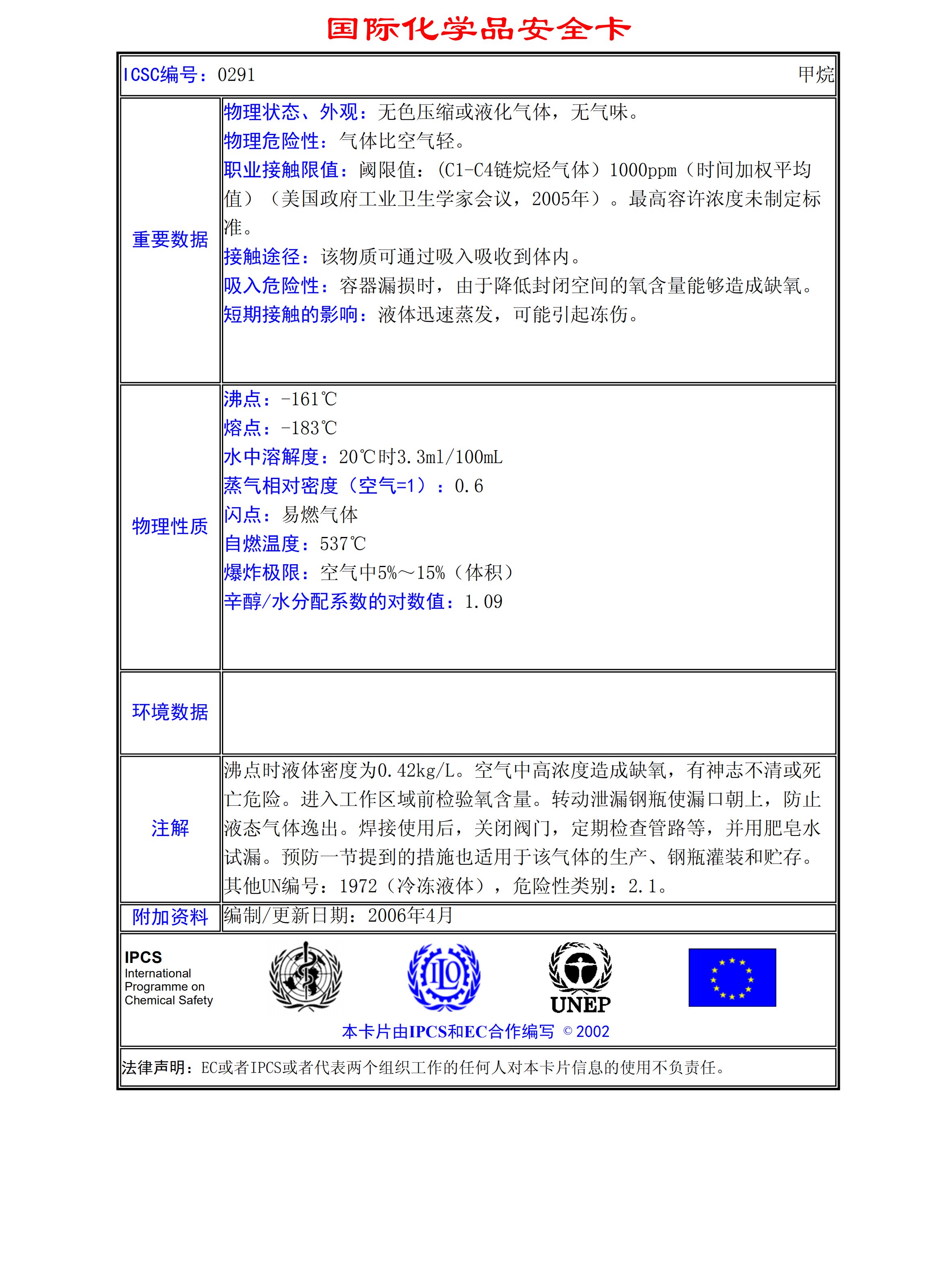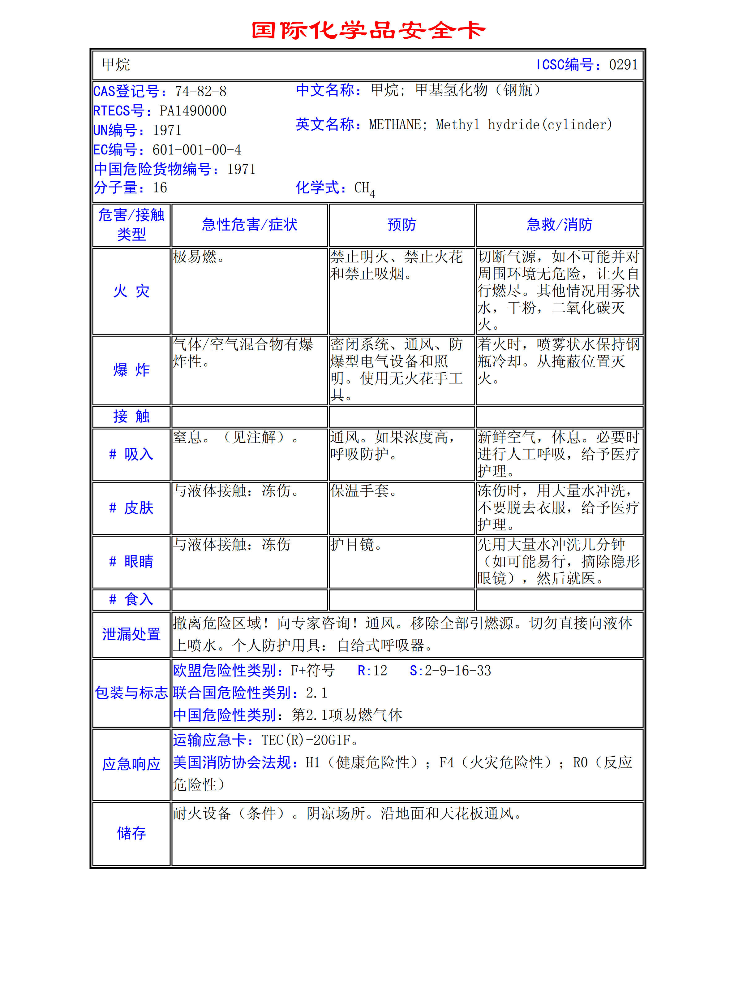 甲烷MSDS