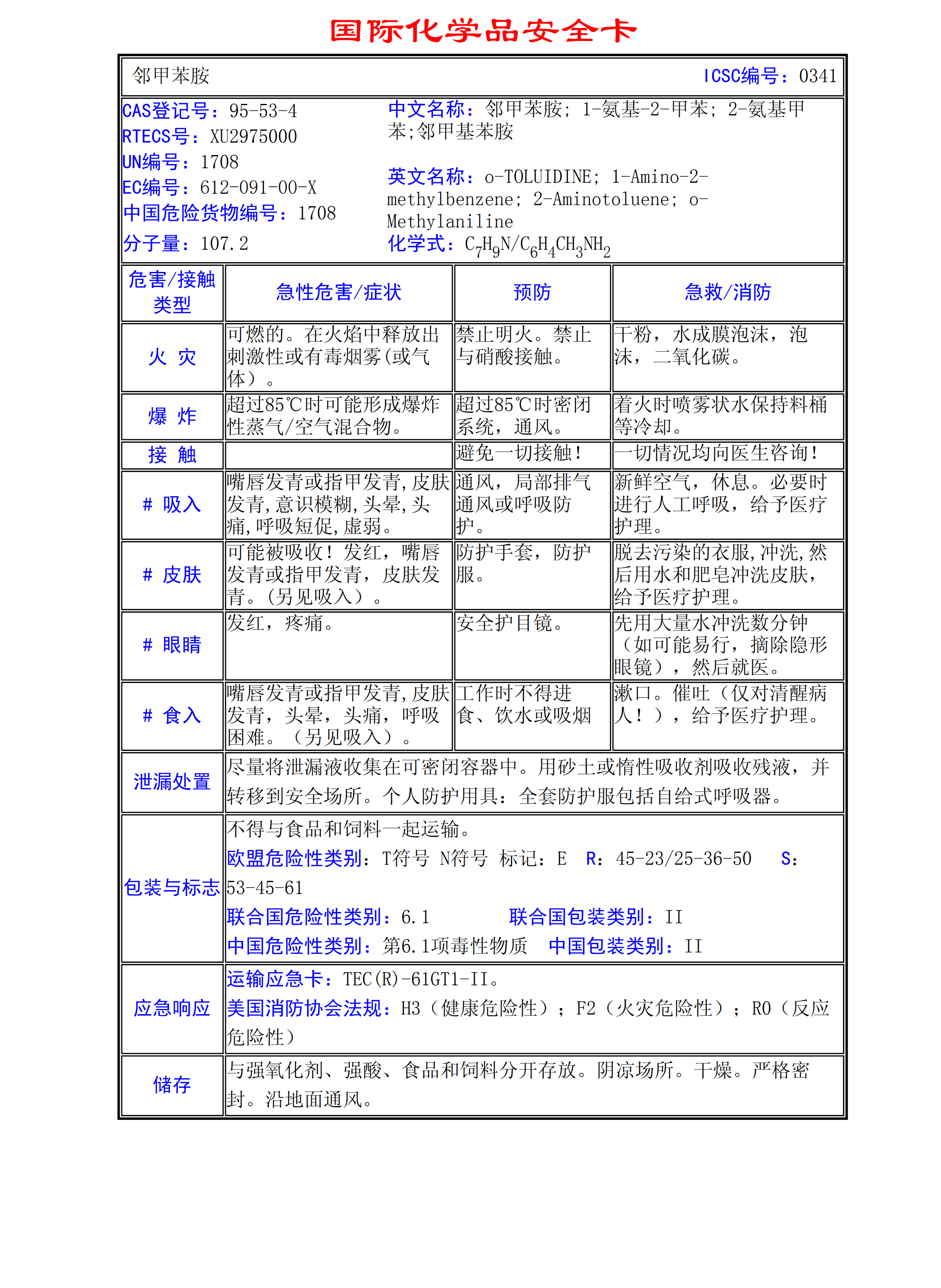 鄰甲苯胺MSDS