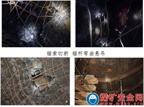 拉伸頸縮,表明巷道破壞瞬間錨桿、錨索承受了水平載荷作用,頂部煤體在水平沖擊載荷作用下發(fā)生碎脹變形,可以推斷頂煤冒落的主要原因是在破壞瞬間,巷道頂部煤體在沖擊載荷作用下發(fā)生碎脹變形,導致錨桿、錨索無法對其進行有效約束。