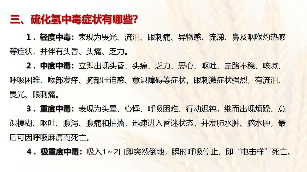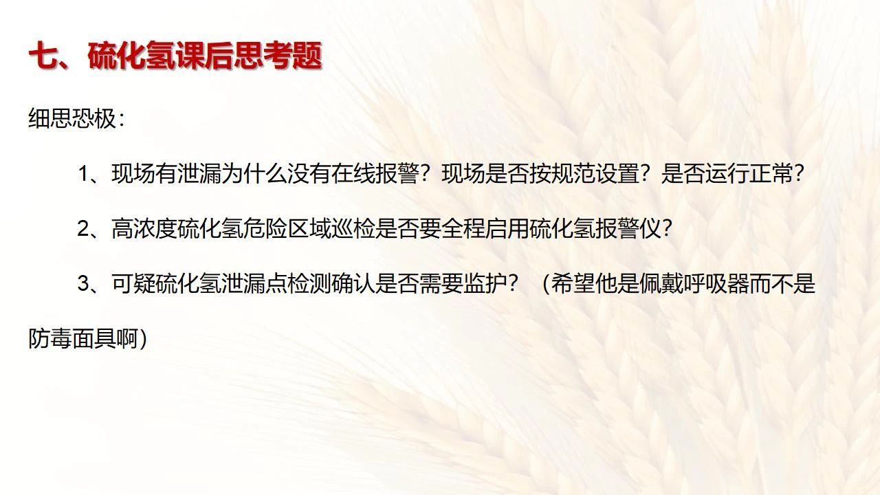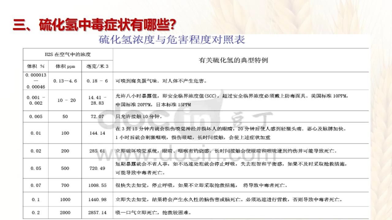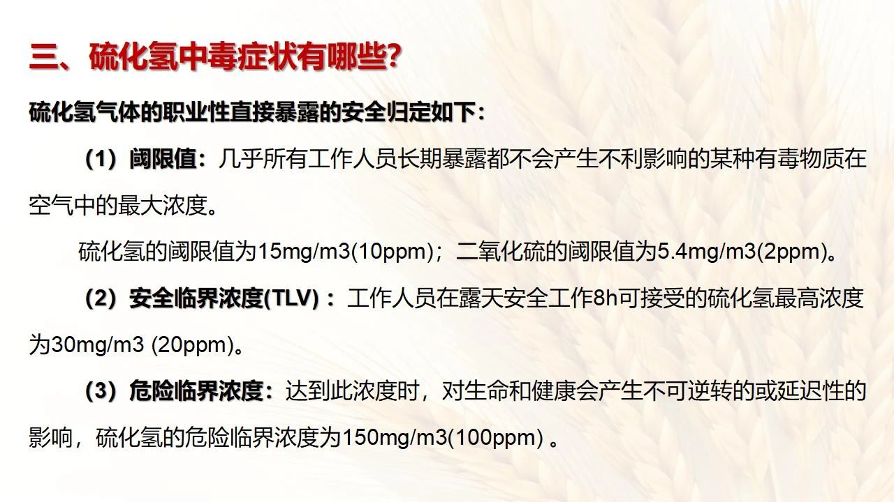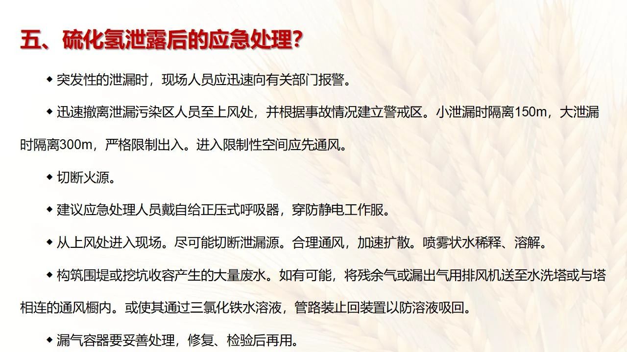 1預防措施 涉及硫化氫作業(yè)活動,必須嚴格遵守《化學品生產單位特殊作業(yè)安全規(guī)范》(GB 30871-2014)及相關的規(guī)范、標準、制度,并特別注意以下幾點: 1.產生硫化氫的生產設備應盡量密閉,并設置自動報警裝置(不能根據(jù)臭味來判斷危險場所硫化氫的濃度,硫化氫達到一定濃度時會導致嗅覺麻痹)。 2.對含有硫化氫的廢水、廢氣、廢渣,要進行凈化處理,達到排放標準后方可排放。 3.進入可能存在硫化氫的密閉容器、坑、窯、地溝等工作場所,應首先測定該場所硫化氫濃度,采取通風排毒措施,確認安全后方可操作。作業(yè)過程中應連續(xù)測定硫化氫濃度。 4.操作時做好個人防護措施,配好防毒用具(防毒面具一般為逃生自救用),作業(yè)工人腰間縛以救護帶或繩子。做好互保,要2人以上人員在場。 5.患有肝炎、腎病、氣管炎的人員不得從事接觸硫化氫作業(yè)。 6.加強員工有關專業(yè)安全知識技能的培訓,提高自我防護意識和能力。 2作業(yè)有關注意事項 (1)檢查采樣器是否完好,采用密閉取樣; (2)佩戴便攜式有毒有害(硫化氫)氣體檢測儀、適用的防毒用具,站在上風向,并有專人監(jiān)護; (3)采樣過程中手閥應慢慢打開,不要用扳手敲打閥門。 (1)佩戴便攜式有毒有害(硫化氫)氣體檢測儀、適用的防毒用具,站在上風向,并有專人監(jiān)護; (2)切水閥與切水口應有一定距離; (3)脫出的酸性氣要用氫氧化鈣或氫氧化鈉溶液中和,并有隔離措施,防止過路行人中毒; (4)切水過程中人不能離開現(xiàn)場。 需進入設備、容器進行檢修,應經過加盲板、吹掃、置換、采樣分析合格、辦理進設備容器安全作業(yè)票后,才能進入作業(yè)。但有些設備容器在檢修前,需進人排除殘余的油泥、余渣,清理過程中會散發(fā)出硫化氫和油氣等有毒有害氣體,必須做好安全措施。以下七項為設備內檢修作業(yè)步驟: (1)制定施工方案; (2)作業(yè)人員經過安全技術培訓; (3)進設備容器作業(yè)前,必須作好氣體采樣分析; (4)辦理進入受限空間安全作業(yè)票; (5)佩戴防毒用具(空呼等),攜帶好安全帶(繩); (6)作業(yè)時間不宜過長,一般不超過30min; (7)施工過程須有專人監(jiān)護,必要時應有醫(yī)務人員在場。 (1)執(zhí)行進入受限空間作業(yè)安全防護規(guī)定; (2)控制各種物料的切水排凝進入下水道; (3)采用強制通風或自然通風,保證氧含量為18%-21%,在富氧環(huán)境下不應大于23.5%; (4)配帶防毒用具(空呼等); (5)攜帶好安全帶(繩); (6)進入下水道內作業(yè)井下要設專人監(jiān)護,并與地面保持密切聯(lián)系。 (1)下油池清理前,必須用泵把污油、污水抽干凈,用高壓水沖洗置換; (2)采樣分析,根據(jù)測定結果確定施工方案和安全措施,辦理好進入受限空間作業(yè)票。 (3)配備防毒用具(空呼等),有專人監(jiān)護,必要時要攜好安全帶(繩); 設備、容器、管線存有硫化氫物料的堵漏、拆卸或安裝作業(yè)時,必須做到: (1)嚴格控制帶壓作業(yè),應把與其設備容器相通的閥門關死,安裝盲板,撤掉余壓;辦理相應安全作業(yè)票; (2)佩戴適用的防毒用具(空呼等),有專人監(jiān)護; (3)拆卸法蘭螺絲時,在松動之前,不要把螺絲全部拆開,嚴防有毒氣體大量沖出。 (1)平穩(wěn)操作,嚴防跑、冒、滴、漏; (2)裝置易泄漏或氣體易積聚的位置應安裝固定式硫化氫檢測報警器; (3)加強機泵設備的維護管理,減少泄漏; (4)可能有泄漏的地方加強通風; (5)涉及硫化氫物料的容器、管線、閥門等要定期檢查更換; (6)發(fā)現(xiàn)硫化氫濃度高,要先報告,采取一定防護措施后,才能進入現(xiàn)場檢查和處理。 (1)嚴禁在進、出油及調合過程中進行人工檢尺、測溫及拆裝安全附件等作業(yè); (2)必要的檢查、切水,操作人員應佩戴便攜式有毒有害(硫化氫)氣體檢測儀,站在上風向,并有專人監(jiān)護; (3)準備好適合的防毒面具,以便急用。 涉及有可能存在產生(逸出、外泄)硫化氫或者殘存硫化氫的清洗作業(yè)時,應事先進行風險辨識分析,并結合分析結果采取安全措施。