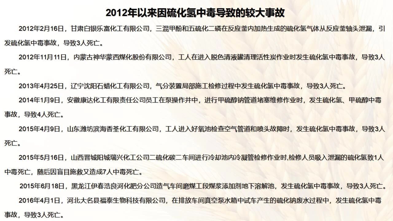 易發(fā)生硫化氫中毒的部分行業(yè)領域