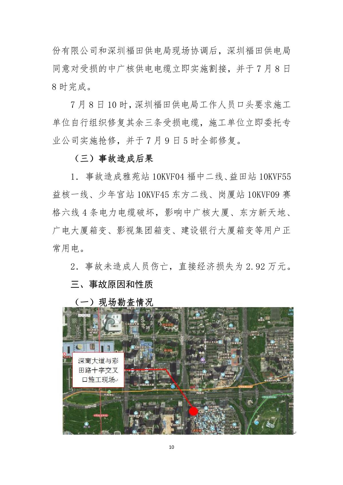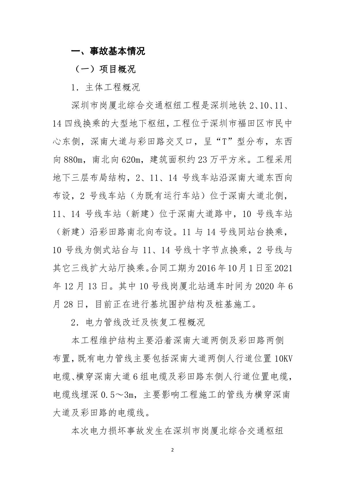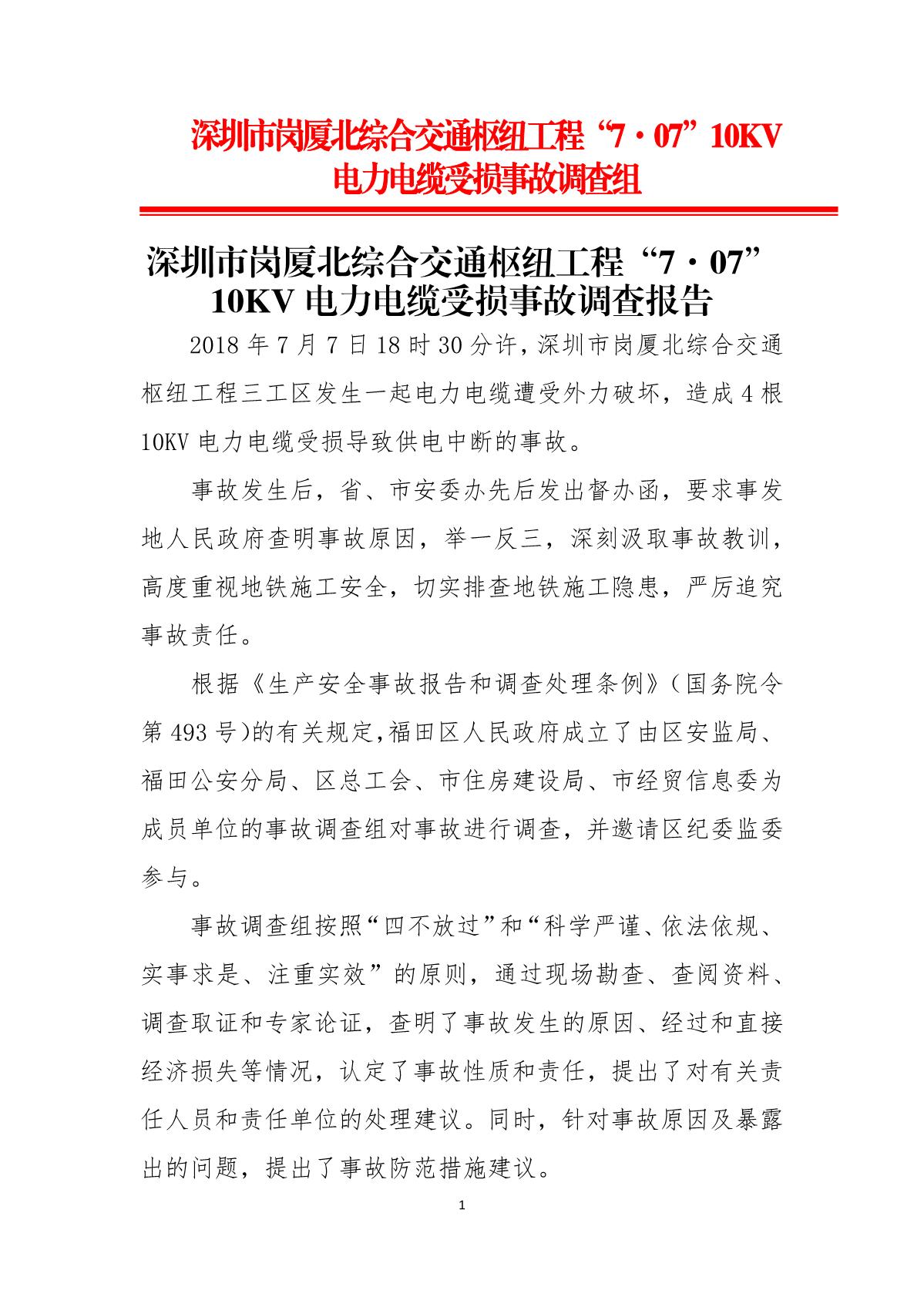 深圳市崗廈北綜合交通樞紐工程“7.07”10kv電力電纜受損事故調(diào)查報(bào)告