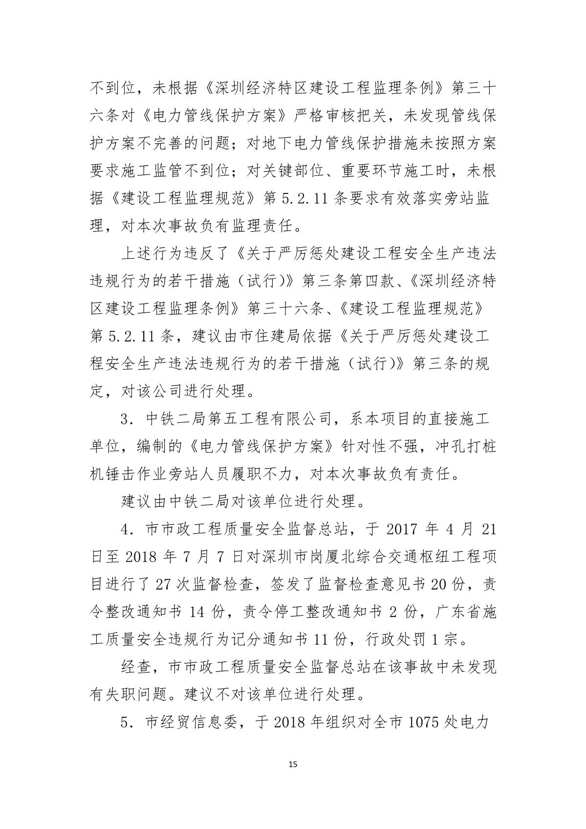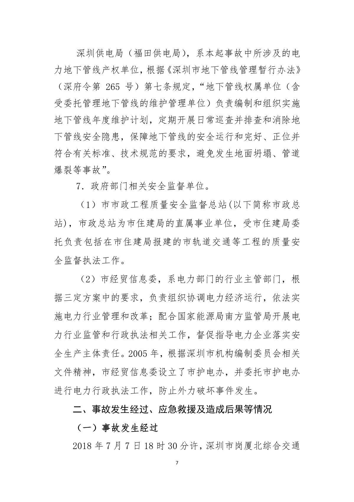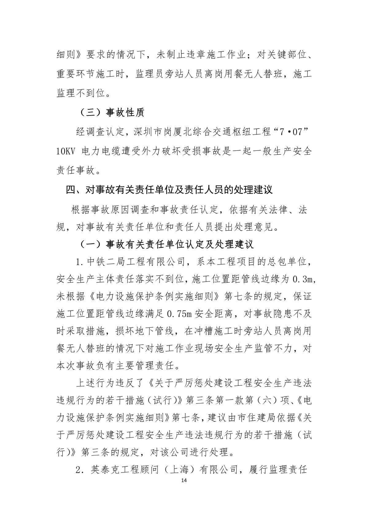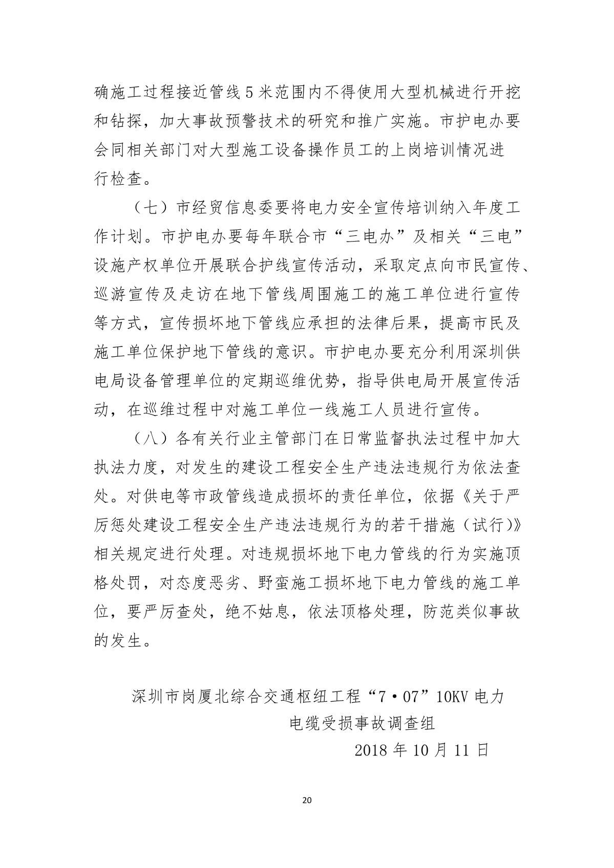 深圳市崗廈北綜合交通樞紐工程“7.07”10kv電力電纜受損事故調(diào)查報(bào)告
