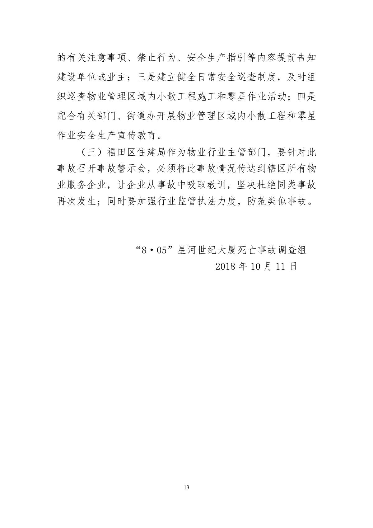 “8.05”星河世紀(jì)大廈死亡事故調(diào)查報告