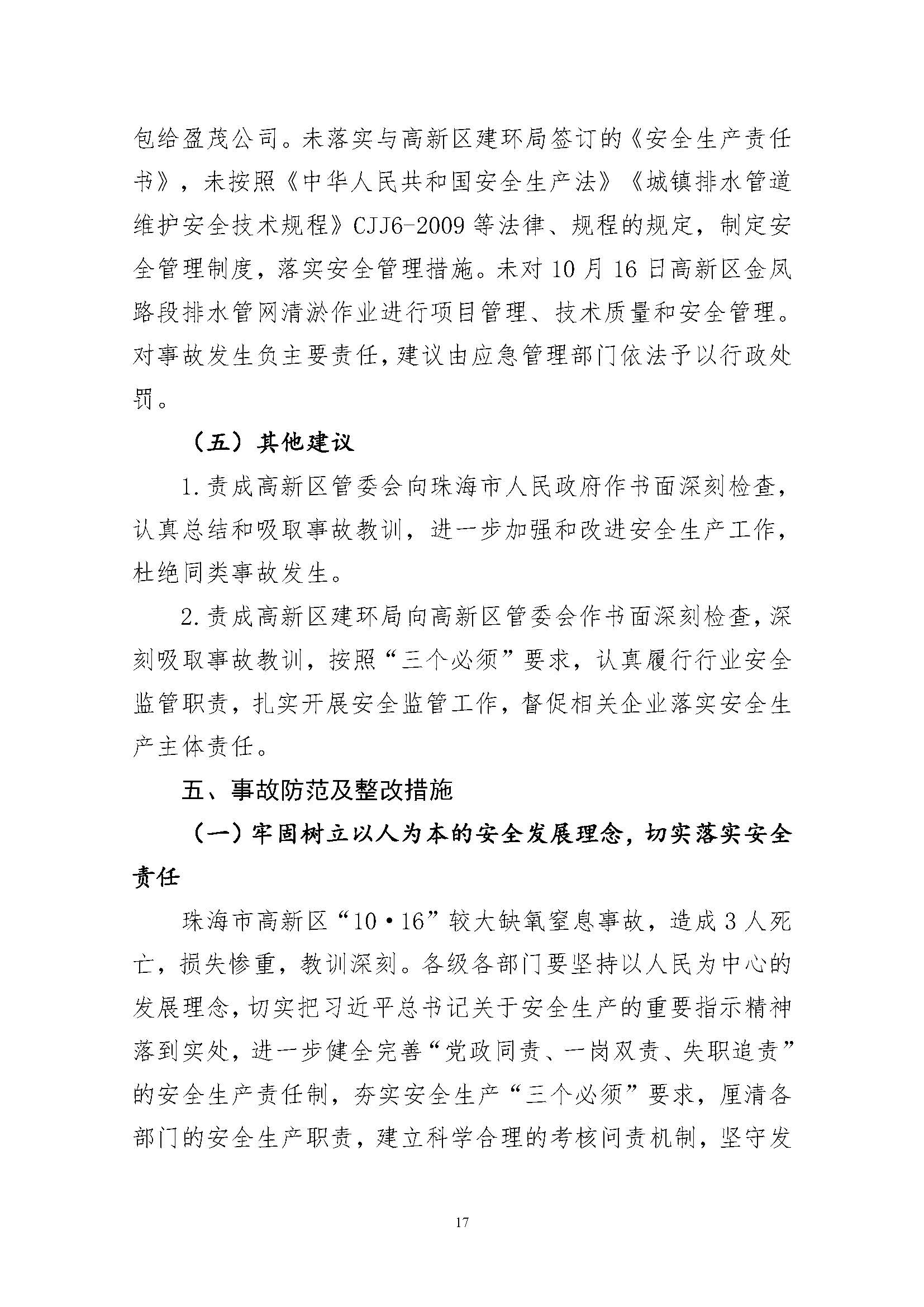 珠海市高新區(qū)“10·16”較大缺氧窒息事故調查報告