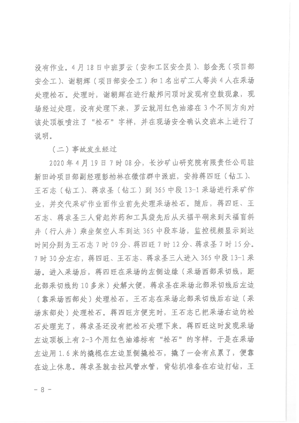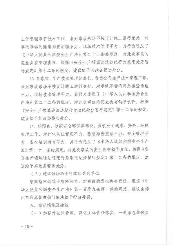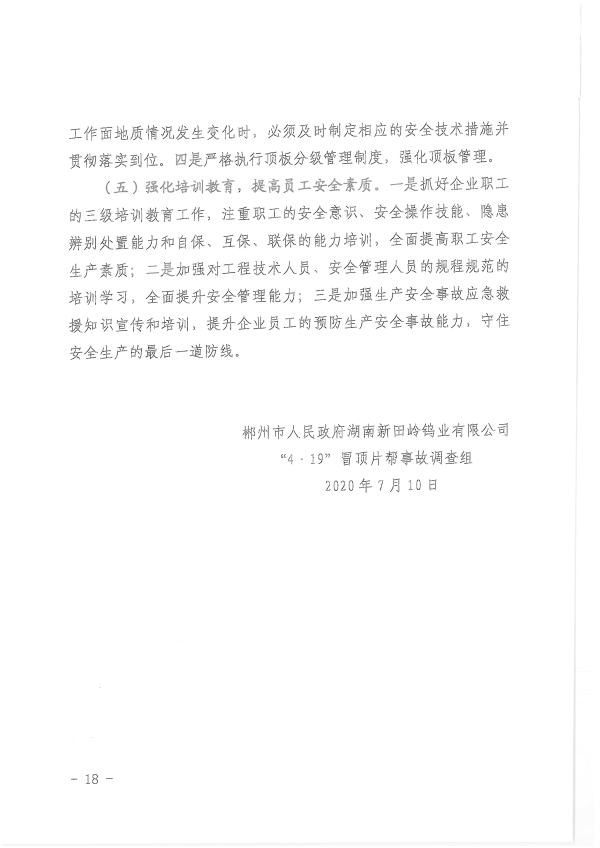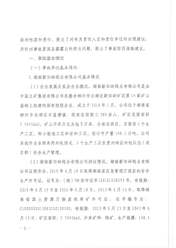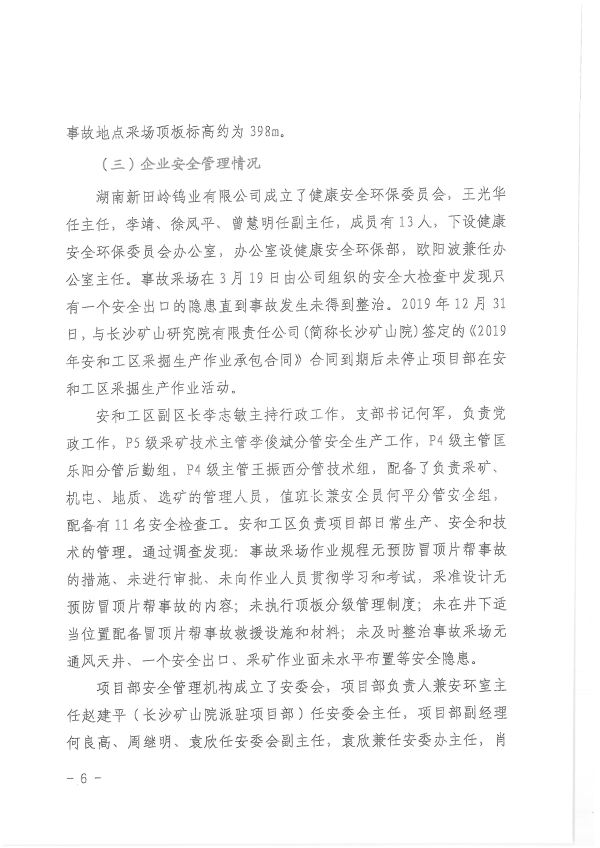 湖南新田嶺鎢業(yè)有限公司“4?19”冒頂片幫事故調(diào)查報告