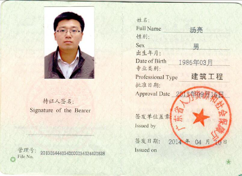 一級(jí)建造師 | 湯 亮 | J200399573 | 00380294 | |