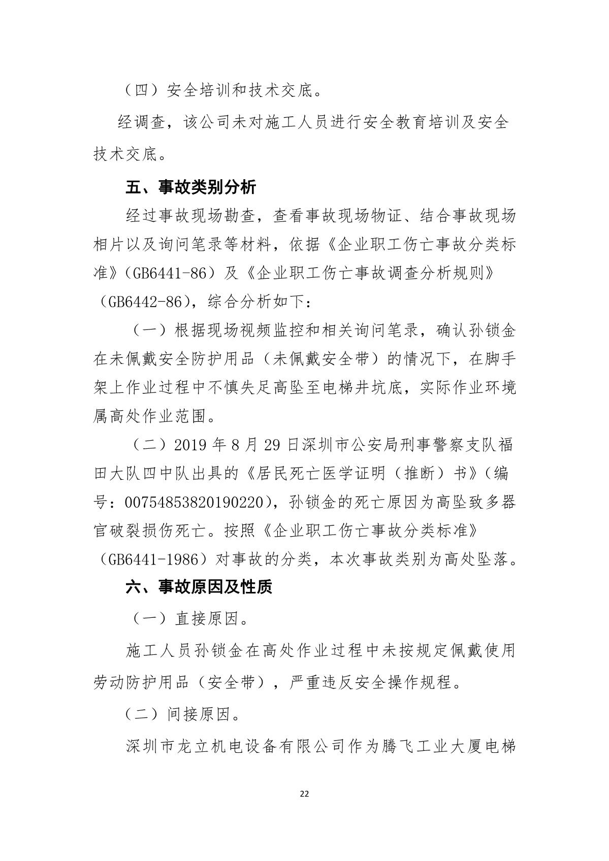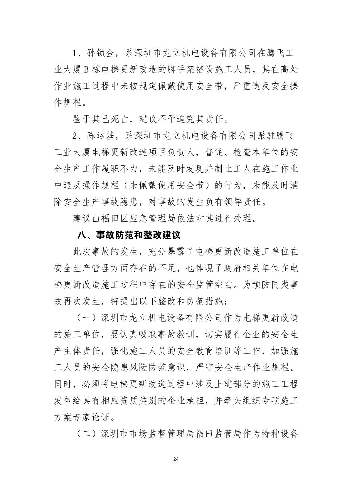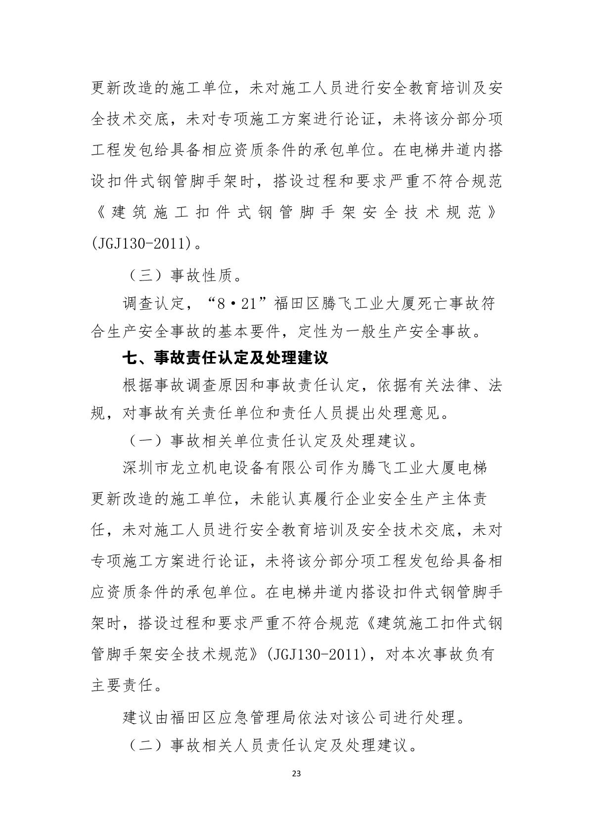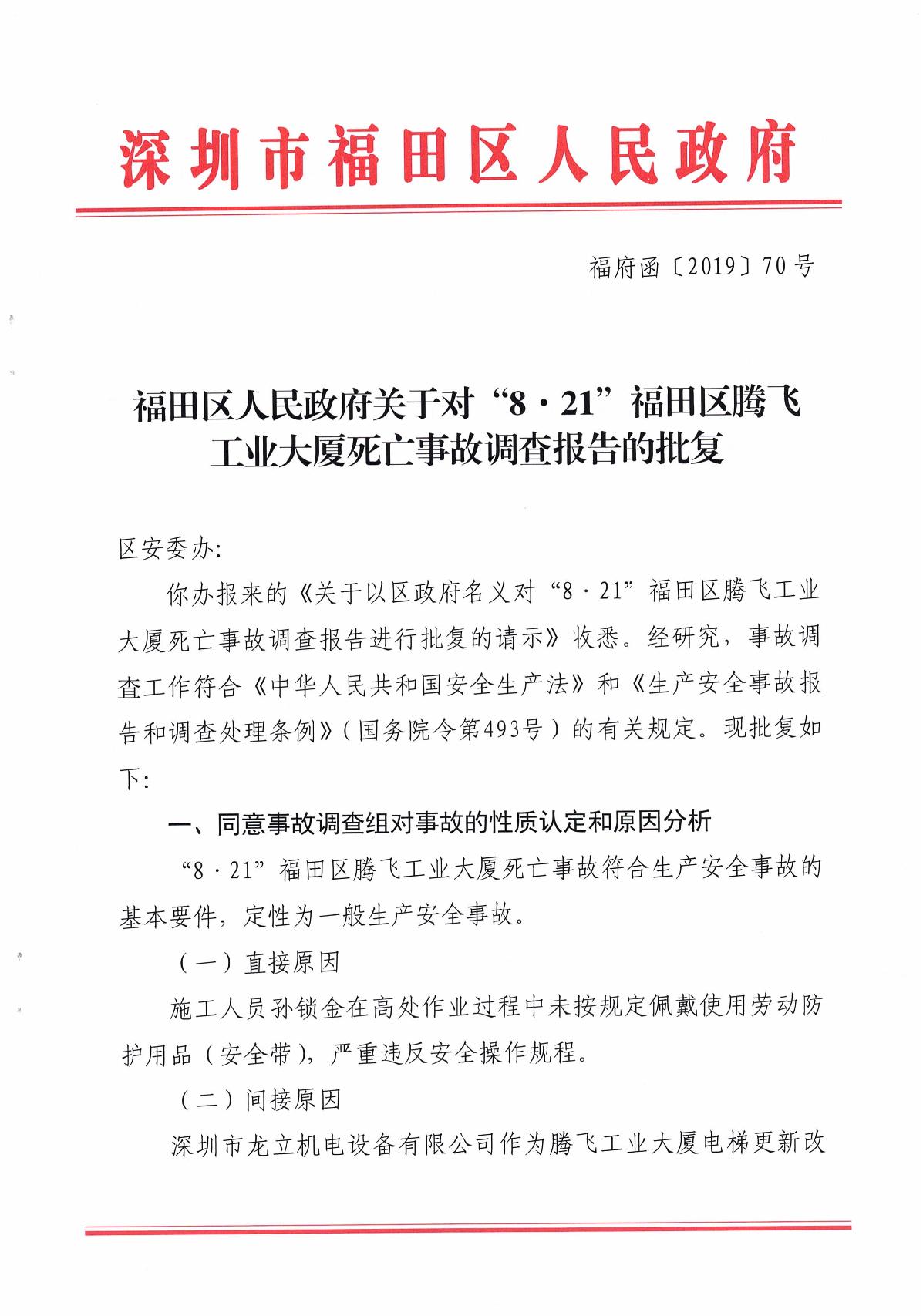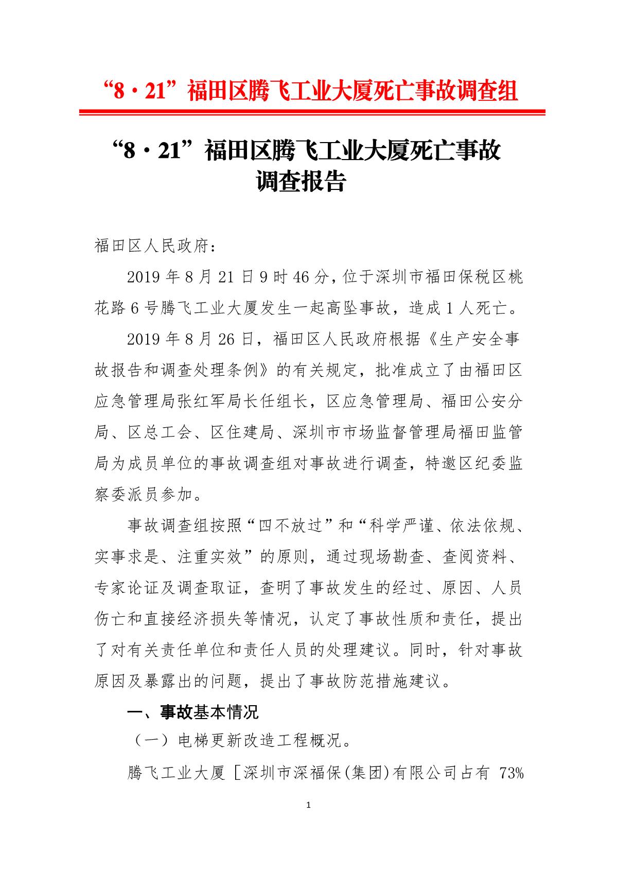“8.21”福田區(qū)騰飛工業(yè)大廈死亡事故調(diào)查報(bào)告