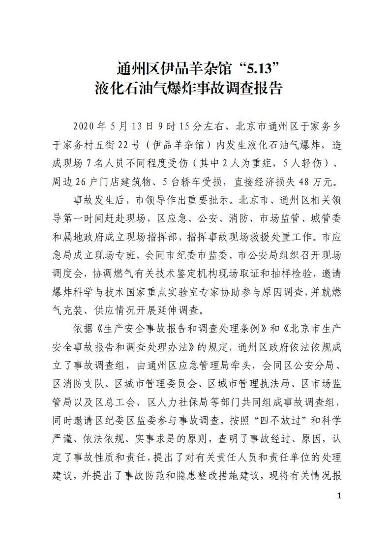 造成7人受傷,26戶建筑物、5輛汽車受損的北京市通州區(qū)伊品羊雜館“5.13”液化石油氣爆炸事故調查報告,來了!